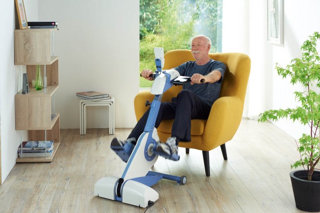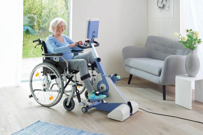 Der Bewegungstrainer THERA-Trainer tigo ermöglicht Menschen mit Bewegungseinschränkungen das therapeutische Training der Beine bzw. des Oberkörpers. Dabei ist aktives (mit Muskelkraft), assistives oder passives (mit Motorkraft) Training möglich – einfach vom Stuhl oder Rollstuhl aus. Sanft und sicher fördert er die Beweglichkeit des Körpers und beeinflusst viele andere gesundheitliche Aspekte positiv. Der vielseitige Arm- und Beintrainer wurde für den täglichen Einsatz in Kliniken oder im häuslichen Bereich entwickelt und entspricht neuesten Qualitäts- und Sicherheitsstandards.
