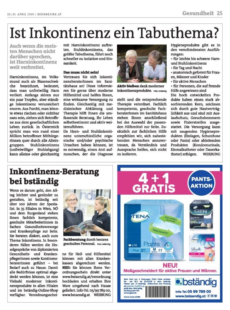 Wiener Bezirkszeitung 10.April 2019 /Leben mit Inkontinenz
